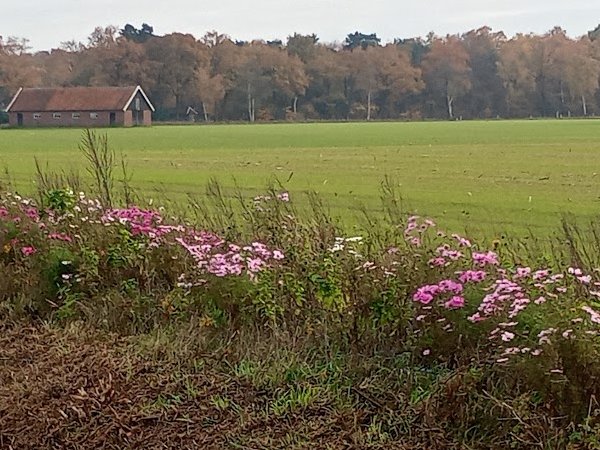 This afternoon, Conny and I went on a bit longer walk that usual. We walked along the Usselerrietweg and turned to the left into the Oude Boekelerdijk (heading the South). The photo below shows the flowers in the field along Oude Boekelerdijk. (Farmers are encouraged to sow flower along the edges of their fields.)