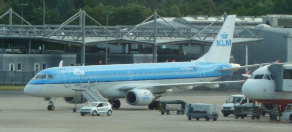 Kort na 3 uur reden we het terrein van vlieghaven op, maar het was niet meteen duidelijk waar de parkeerplaatsen voor langdurig parkeren waren. Uiteindelijk zijn we parkeergarage P5 in gereden. Op de derde verdieping vonden om 15:15 een plaatsje. Om 15:20 vertrokken en waren om 15:27 bij het Sky Train station. Li-Xia deed een beetje onhandig met haar koffer. In de Sky Train (van 15:29-31) viel haar koffer bijna om. Een jongen ving hem op. In de hal aangekomen zagen we dat onze vlucht nog niet op het bord stond. Plotseling herinnerde ik me dat we de videocamera vergeten waren. Die stond nog thuis achter de computer. Ik heb wel 5 DV-tapes meegenomen. Voor niets dus. Maar goed, met de nieuwe fotocamera die ik zaterdag gekocht heb, kan ik ook heel goed video's maken. Li-Xia liet mij het snoertje van de GPS-tracker zien en vroeg wat ze er mee moest doen. Toen realiseerde ik me dat de tracker nog op het dashboard van de auto lag. Ik ben hem maar even gaan halen. Van 15:40-41 in de Sky Train heen, om 15:44 bij de auto, en van 15:48-50 terug met de Sky Train. We zijn even naar het toilet gelopen. Li-Xia is eerst gegaan en daarna ik. Toen we om 16:12 klaar waren en langs de borden liepen (ik met twee koffers aan de hand, want ik was het geklungel van Li-Xia zat), zag ik dat onze vlucht er op stond. We moesten naar de KLM balie lopen. Het inchecken ging vlot, we hoefde alleen onze paspoorten te laten zien. De man controleerde wel of we de juiste visa hadden. Om 16:21 waren we ingecheckd. Nog even het laatste restje water uit een fles opgedronken en de laatste krentenbol opgegeten voordat we om 16:27 door de security check gingen. Li-Xia moest haar jas uittrekken en ik heb haar daar toen maar even mee geholpen. Meteen door gelopen naar Gate 54. Daar weer even naar het toilet. Ik ging eerst. Toen ik uit het toilet kwam, zei Li-Xia dat er iets mis was met haar tas. Inderdaad, ze had haar jas aangetrokken terwijl ze haar tas nog over haar schouder zat en begreep niet hoe het nu kon dat hij vast zat. Ik hielp haar even met het uittrekken. Om 16:45 zaten we bij de gate. Rond tien over vijf kwam er een stel tegenover ons zitten die ook via Amsterdam naar het verre oosten vlogen. Dus we zijn niet de enige die deze route nemen.